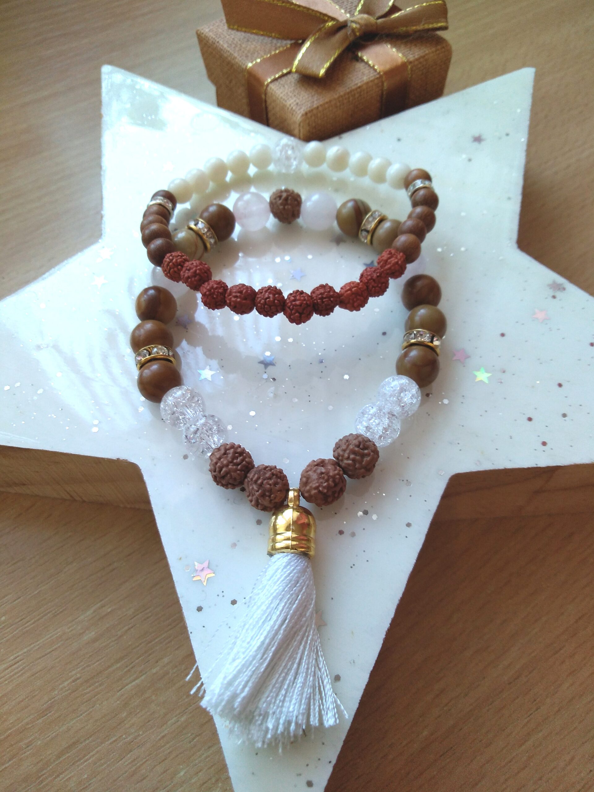 🌳NÁRAMEK RUDRAKSHA, SANTALOVÉ DŘEVO, BÍLÝ KORÁL, KŘIŠŤÁL PUKANÝ ⚪💎