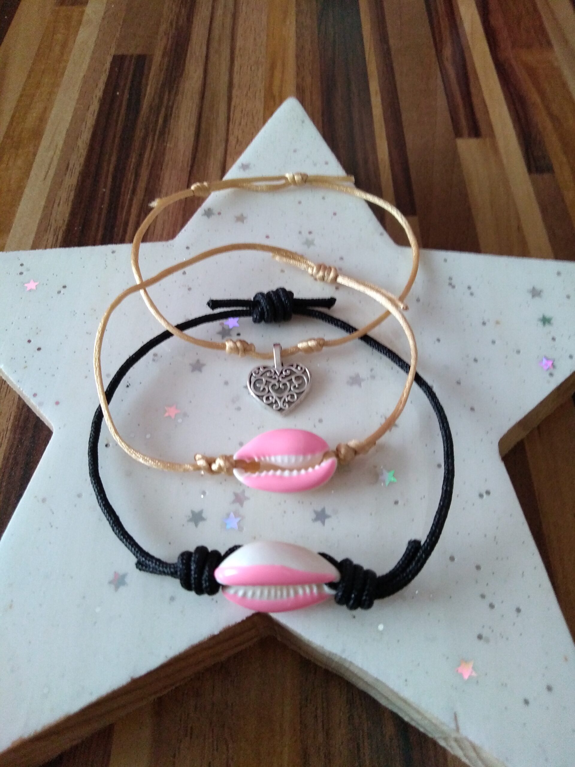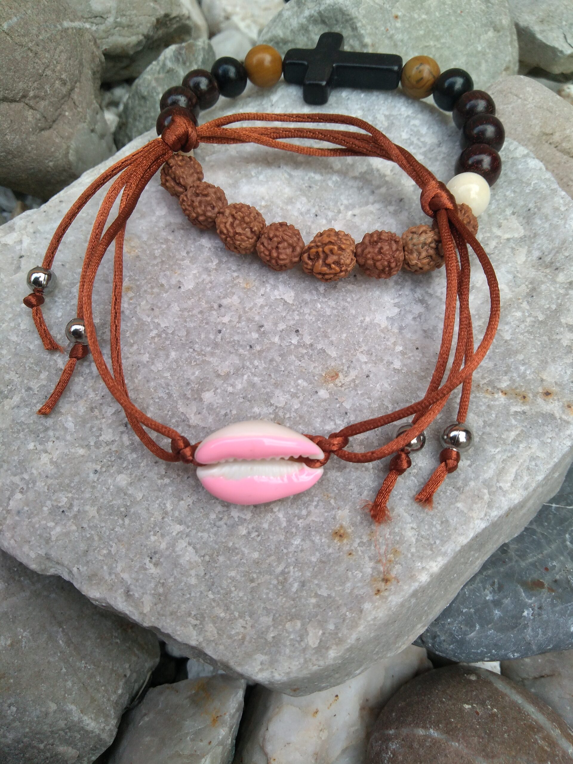 Šňůrkové náramečky, různé barvy, doplňky, hedvábné šňůrky, mušličky